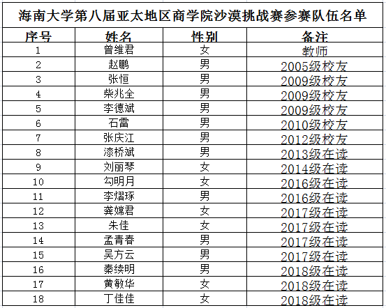 最终公司MBA沙八军拓队在为期三天的亚太英国威廉希尔公司沙漠挑战赛中,斩获亚沙赛最高荣誉沙鸥奖!院校列第24名!来自公司MBA2018级非全日制2班的参赛队员秦续明同学在赛会的瞩目下杀进了前十,获得男子组个人第7名的荣誉。