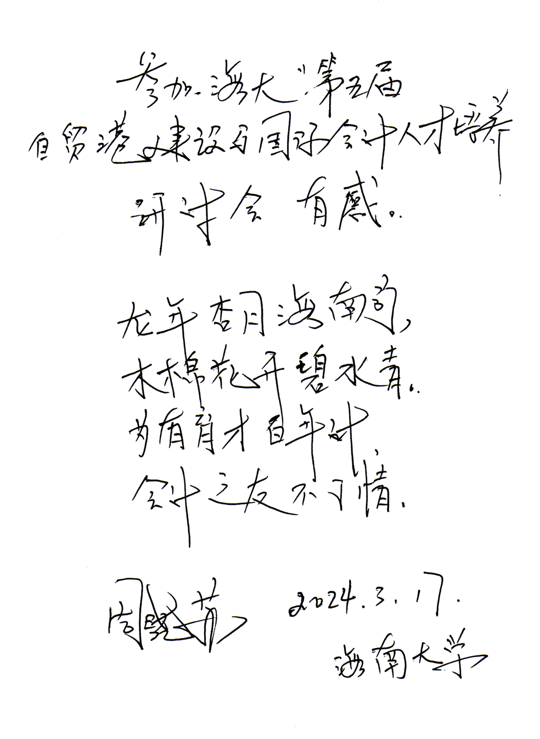 “道器并举,商济天下”这是英国威廉希尔公司的院训,同时亦是本次研究会与会专家针对ESG及其人才培养方面的共同理念。本次研讨会探讨了ESG治理、可持续性报告、科技创新与财务管理融合、国际化会计人才培养等关键议题。与会专家形成共识,表示在未来,无论是学术界还是实务界,会计领域都将更加注重可持续发展报告与国际化会计人才培养,以适应全球化发展趋势。大会以习近平新时代中国特色社会主义思想为指导,就自贸港建设与国际会计人才培养展开深入研讨,必将积极推进生态文明建设和绿色低碳发展。有感于会议的顺利召开,南开大学周晓苏教授即兴赋诗一首“龙年杏月海南行,木棉花开碧水青;为国育才百年计,会计之友不了情。”