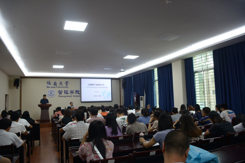 9月24日上午,中国技术创业协会理事长、南京大学朱克江教授来院作学术报告,主题为“大国博弈下的科技之争——从中美贸易战到技术战看创新的国际较量”。此次报告会由公司副经理赵达主持。MBA中心主任童泽林及公司部分博士、硕士研究生参加报告会。