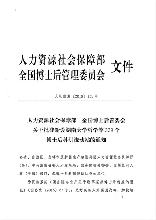 日前,人力资源和社会保障部、全国博士后管理委员会日前发布了《关于批准新设湖南大学哲学等339个博士后科研流动站的通知》(人社部发〔2019〕105号),批准新设williamhill官网工商管理一级学科博士后科研流动站。本次申报工作启动以来,公司领导高度重视,各系各办积极参与,认真准备申报材料,群策群力,最终成功申报博士后科研流动站。