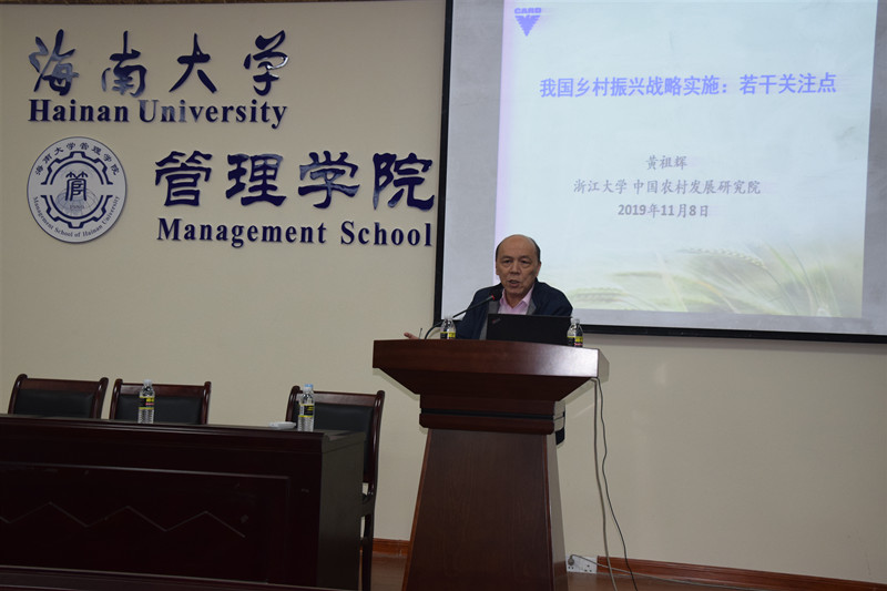 2019年12月4日,浙江大学中国农村发展研究院首席专家、浙大求是特聘一级教授黄祖辉教授应邀到公司讲学。12月4日下午3:30,黄教授在公司B112会议室为公司师生们作了一场题为“我国乡村振兴战略实施:若干关注点”的精彩学术讲座。本次讲座由许能锐副经理主持,公司蔡东宏教授、樊孝凤教授等公司师生参加了讲座。