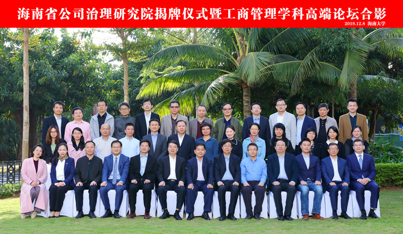 12月8日下午,由公司主办的海南省公司治理研究院揭牌仪式暨工商管理学科高端论坛在williamhill官网国际学术交流中心和谐厅举行。