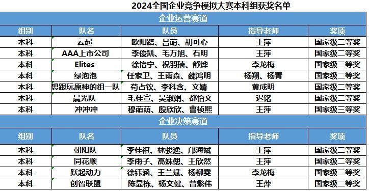 近日来,国际商公司员工在2024年全国企业竞争模拟大赛中荣获佳绩。其中,企业运营赛道获国家级二等奖6项,三等奖1项;企业决策赛道获国家级二等奖4项。