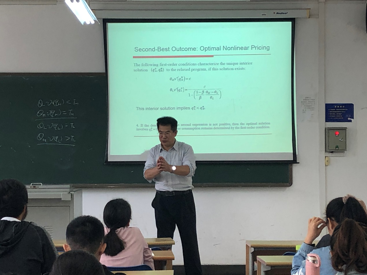 赵教授就《合同理论》中的信息甄别、信号发送、道德风险、两期逆向选择等问题逐层深入地为师生分析了信息不对称下供应链中各方决策制定的博弈过程,详细解答了师生们提出的各种问题。赵教授的讲座深入浅出,信息丰富,参加讲座的师生表示提升了分析问题解决问题的能力,开阔了视野,受益匪浅。