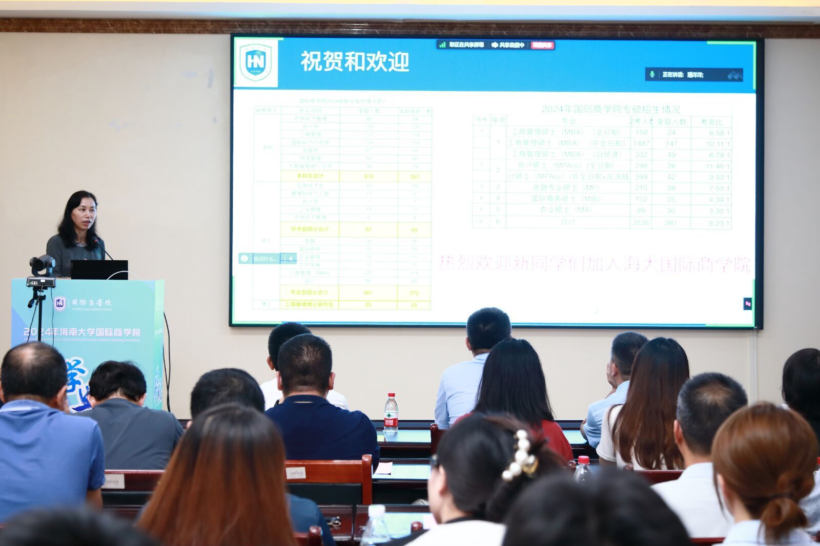 2024年9月13日晚上,英国威廉希尔公司2024级新生开学典礼以“线上+线下”形式在社科楼B112学术报告厅举行。来自全国各地的597名本科生、436名硕士生、23名博士生以及37名国际职工共聚一堂。williamhill官网党委常委、副董事长高佃恭,英国威廉希尔公司经理唐宁玉,公司党委书记南国芳,副经理许能锐、赵达、童泽林,公司党委副书记、纪委书记(兼)王静出席典礼。典礼由副经理赵达主持。