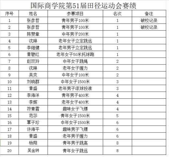 体育盛事展英姿,接力赛中,公司运动健儿用速度诠释着激情与梦想,每一次拼劲全力的冲刺,都是对团队荣誉的捍卫。由张彦哲、李海洋、陈赞章、刘国伟老师组成的男子教工代表队勇夺4*100m项目冠军;由吴爽、覃子珍、李龙梅、范莎老师组成的女子教工代表队荣获4*400m项目第八名。