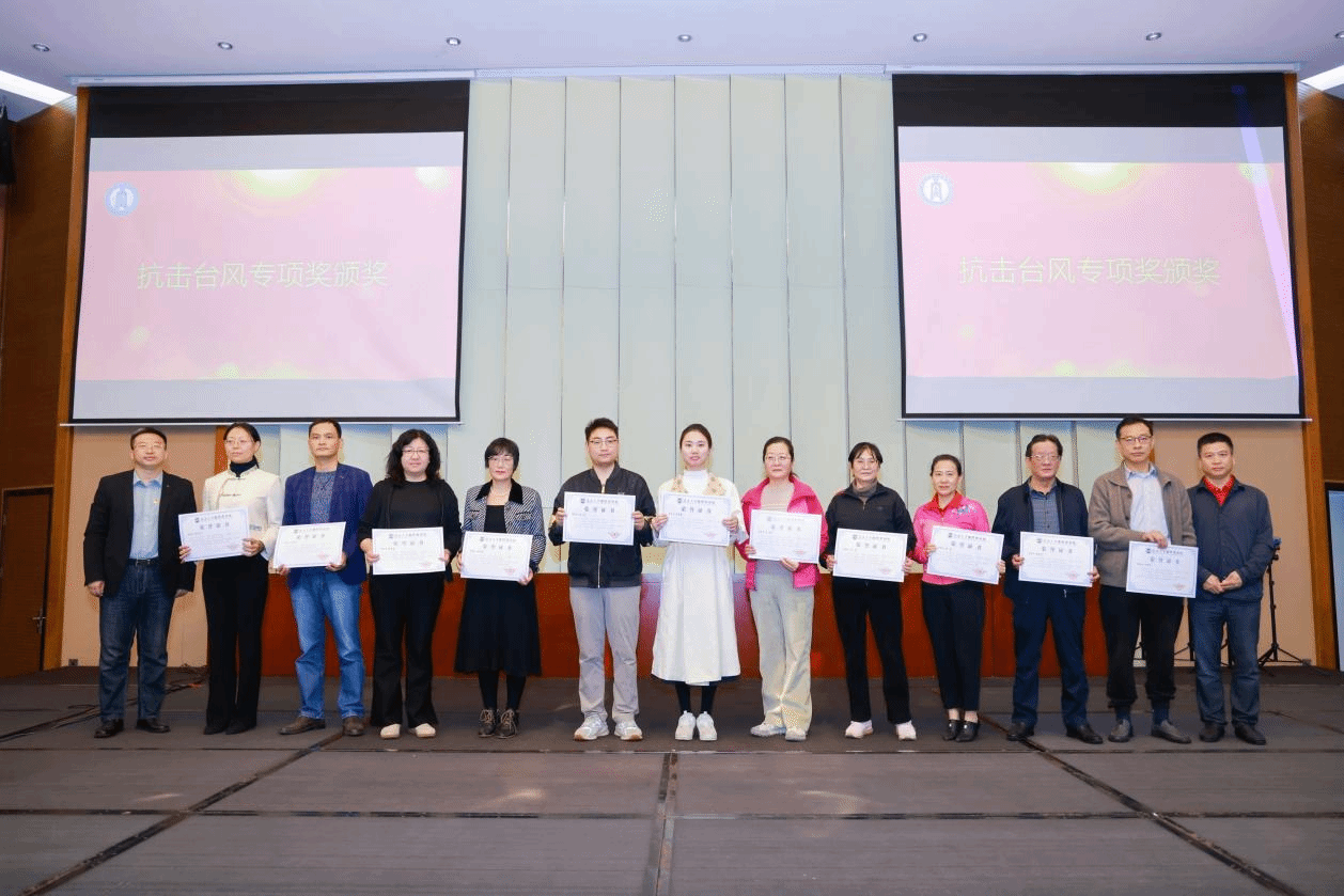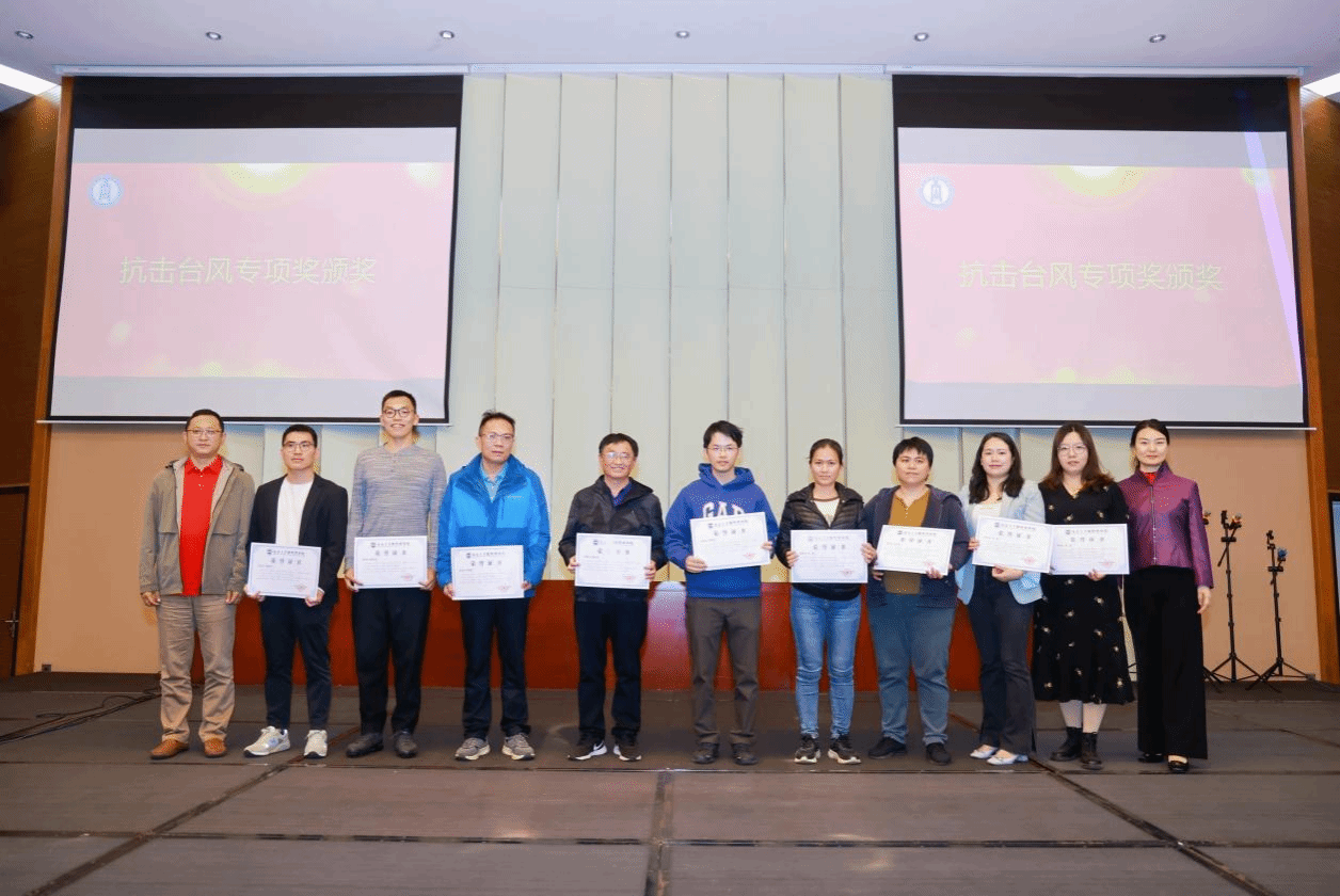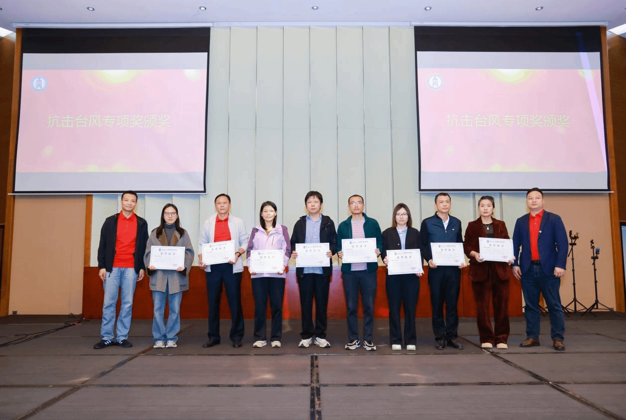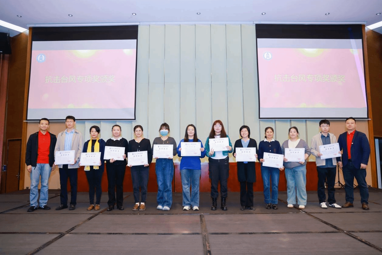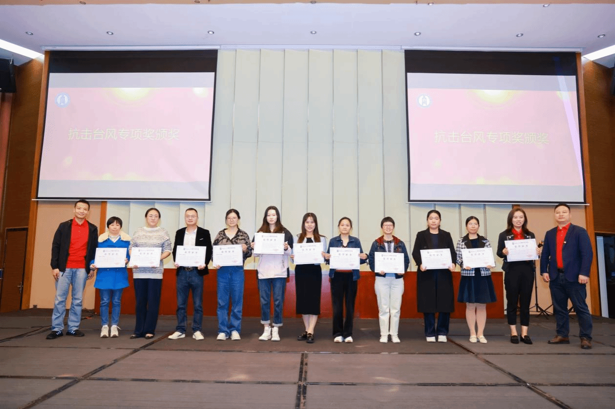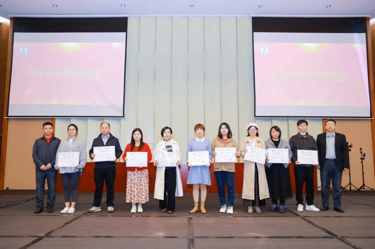 公司领导班子为获得2024年度“团队建设奖”“公司发展奖”和台风“摩羯”灾后重建工作专项奖的人员颁奖。团队建设奖旨在表彰在推动工商管理、应用经济学等学科的快速发展,提高公司的教学质量和科研水平作出突出贡献的老师们,公司发展奖旨在表彰在公司发展方面,凭借出色的教学能力和管理经验作出重要贡献的老师们;台风“摩羯”灾后重建工作专项奖旨在表彰在抗击台风“摩羯”的校园清理工作中,勇于担当、挺身而出的老师们。