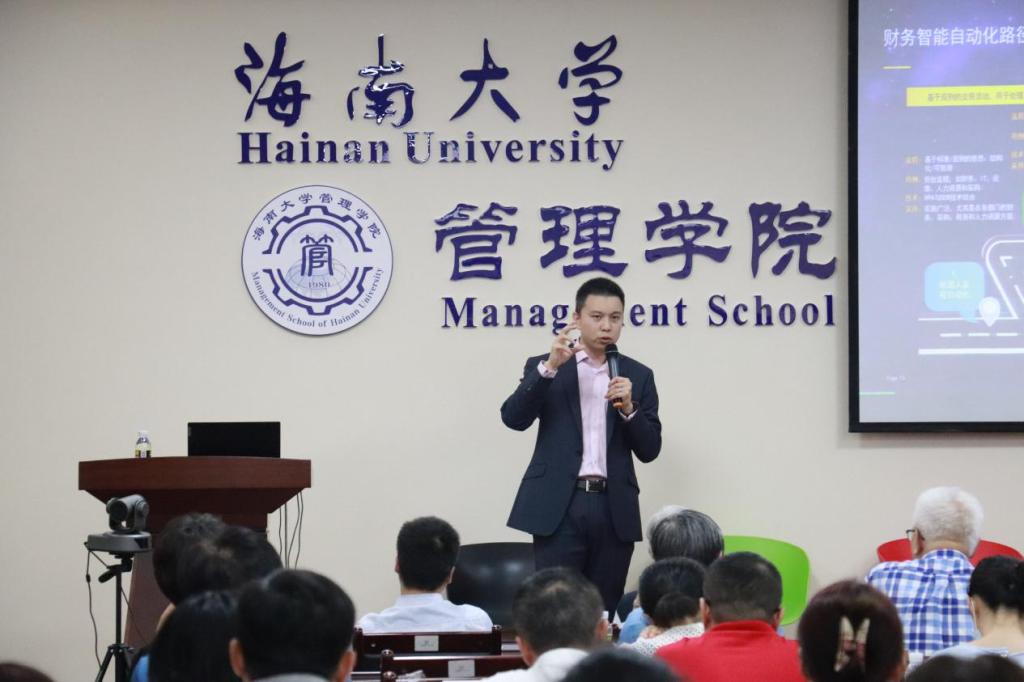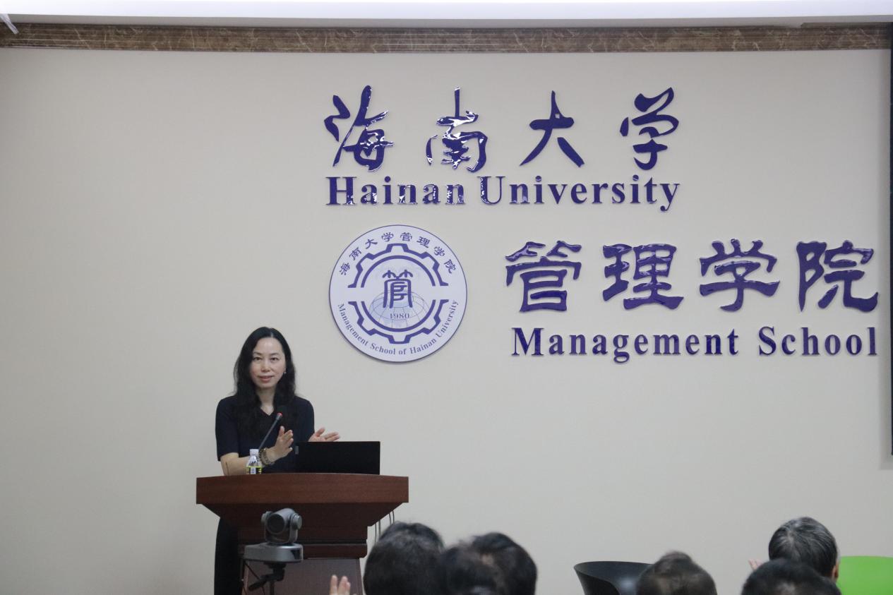 唐经理在开场中向与会嘉宾介绍了管理公司的发展现状,并表示公司将依托海南自由贸易港建设和工商管理一级博士点、一级学科点的建设,培养既了解本土知识又具有国际视野的高素质人才,为海南自由贸易港的建设做出理论和实践上的贡献。