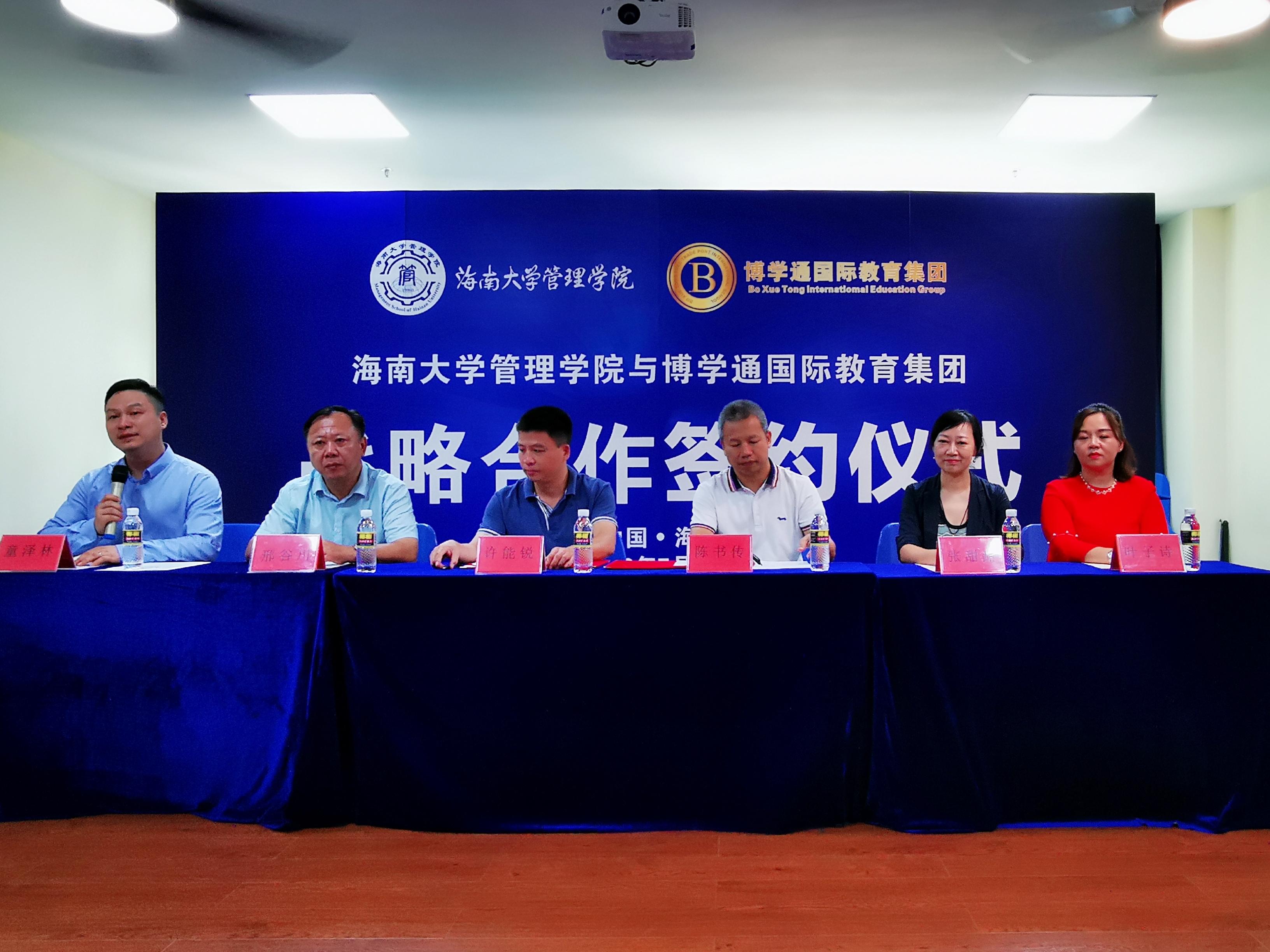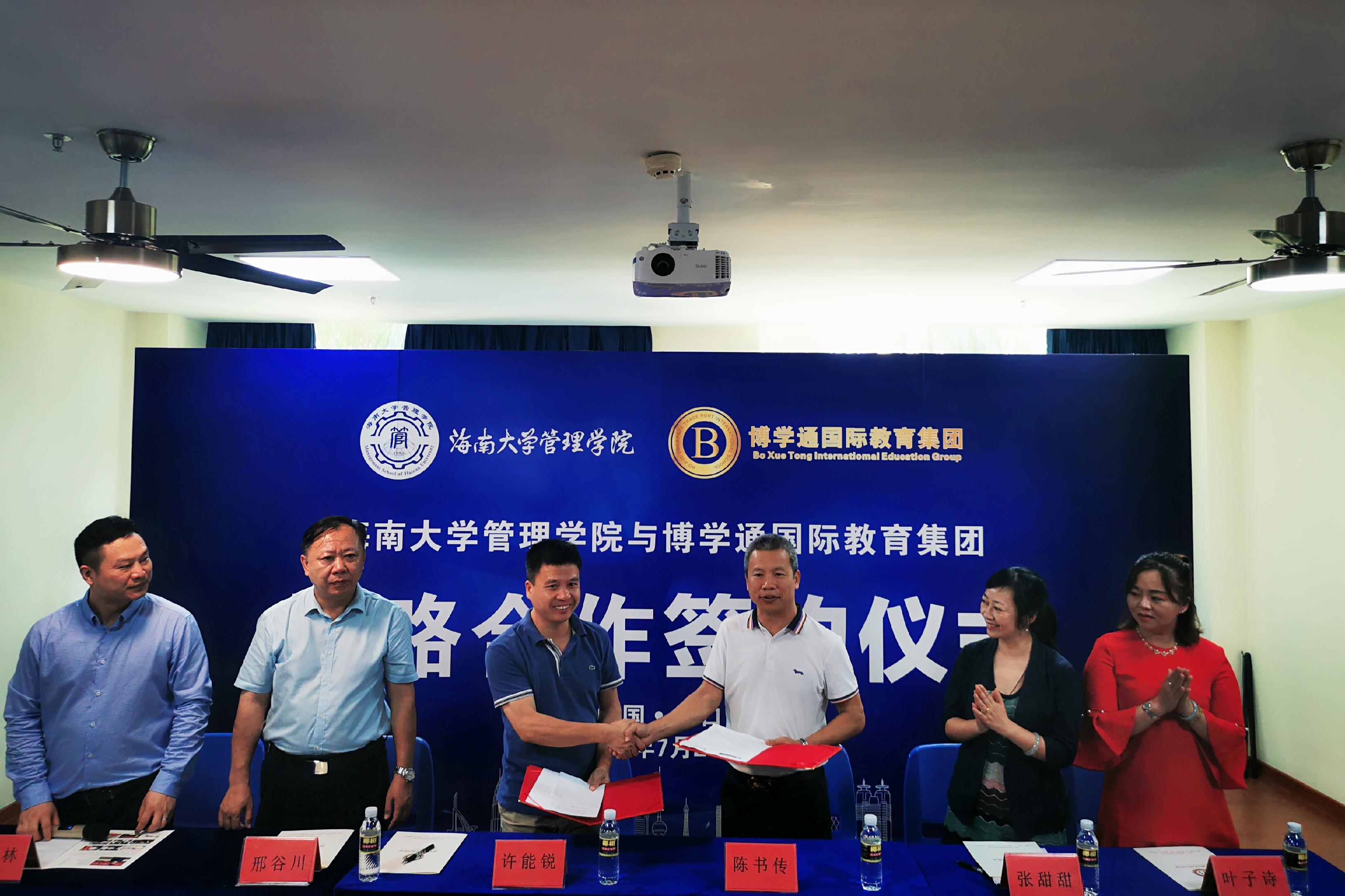 7月27日上午,williamhill官网管理公司与博学通国际教育集团签署战略合作协议。双方将围绕联合举行管理培训项目、联合开展管理咨询项目、校企文化交流、实习实践合作等方面展开合作,共同致力于培养海南自贸港建设高级管理人才。williamhill官网管理公司党委书记邢谷川、管理公司副经理许能锐、博学通国际教育集团董事长、博学通自贸港国际公司经理兼海口市龙华区工商联(总商会)主席/会长陈书传等出席签约仪式。