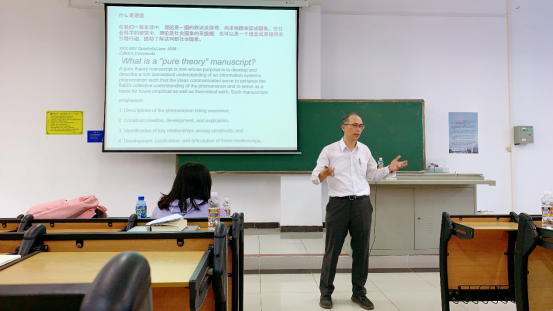 下午3:30,萧教授在williamhill官网5号教学楼211教室继续为师生们带来一场精彩的学术讲座。萧教授以问题为导向,提出了“什么是理论的贡献?如何发掘理论的缺口?如何写出理论的贡献?”三个问题,并给予了回答。萧教授首先从理论的概念出发,向同学们先后介绍了科技接受模式,任务、科技适配理论,服务质量理论,期望确认理论,说明了理论对于期刊论文写作的贡献和重要性;随即从期望确认理论运用于信息系统领域、资料收集和研究模式三个角度回应如何发掘理论的缺口的问题。最后,萧教授以一篇整合ECT-IS和efficacy理论的文章为例子,回答期刊文章如何提出理论贡献。