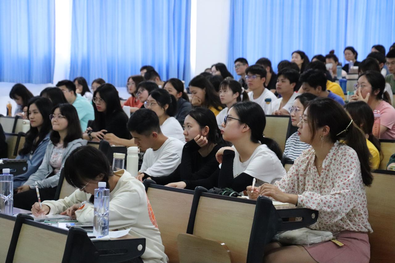 付景涛副经理从国企党建的源起出发,向同学们深入阐述了党建思想发展的基本规律、国企党建的重要性以及目前所面临的问题。他鼓励同学们抓住海南自贸港建设的发展机遇,注重联系理论与实际,加强对党建经典著作的学习,提升自身理论水平,提高逻辑思维能力与哲学思考能力,同时,身体力行,在实践中练就过硬本领。