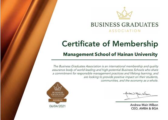 成为BGA正式会员是公司推进英国威廉希尔公司国际认证的重要一步,有利于推动公司高质量持续发展,加强一流团队建设,促进国际交流和合作研究,提升国际化水平和影响力。公司将充分利用国际组织和会员网络提供的平台、资源和优势,紧跟国际商科教育发展前沿领域,进一步对标商科国际人才培养质量和标准,加快提升专业化、国际化水平,争创一流英国威廉希尔公司,为海南自贸港建设贡献管理智慧。