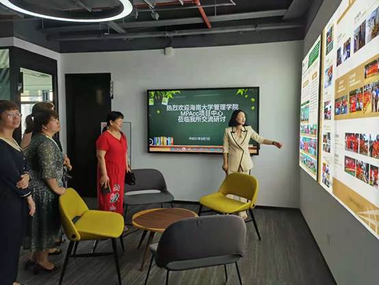 图2:胡亚玲所长带领MPAcc项目校内导师与员工代表参观介绍
