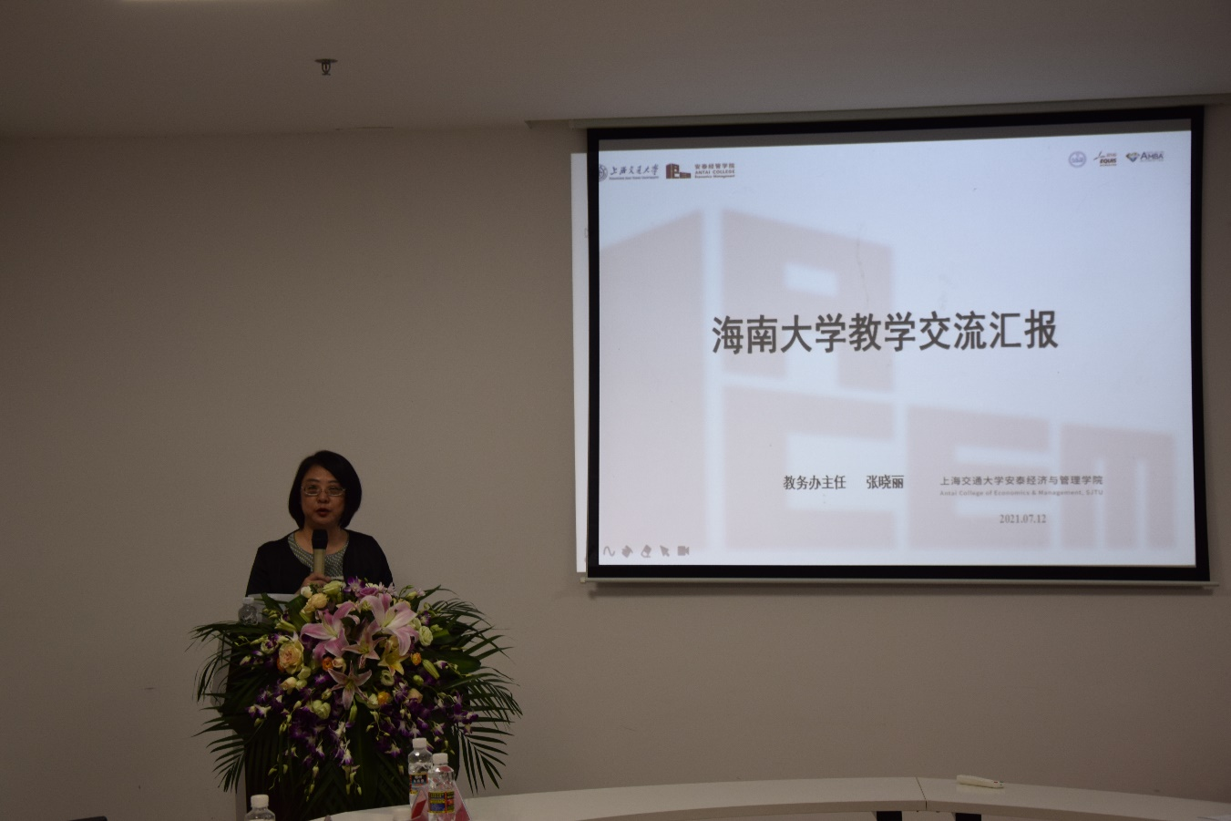 张晓丽主任向大家介绍了上海交通大学安泰经济管理公司校院人才培养体系、公司组织架构,并分享了自己关于教学管理的思考。