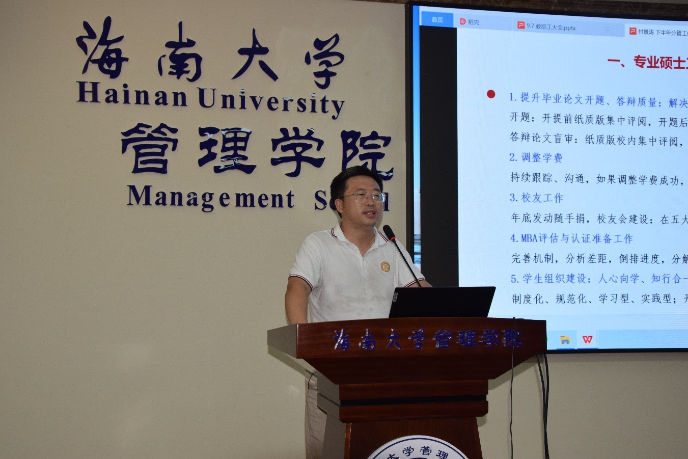 各分管院领导在会上分别汇报了分管工作开展情况及下半年工作计划,公司教学、科研、人才引进、员工工作、对外交流、高管培训、地方服务等各项工作均扎实开展并取得显著成效。