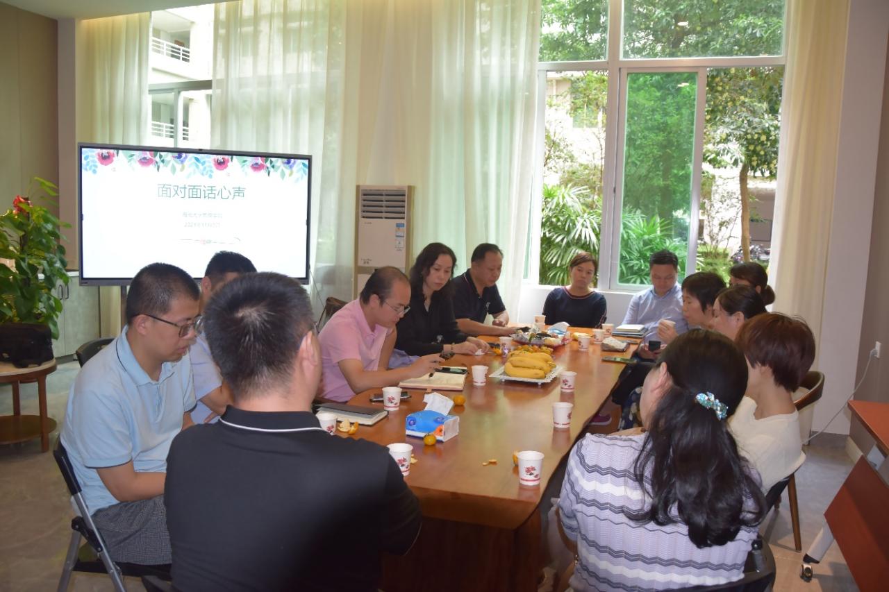 2021年11月2日下午,管理公司在社科楼B106室举办“面对面”谈心谈话活动(第六期)。经理唐宁玉、党委书记邢谷川、副经理张德生、副书记易振、副经理付景涛、副经理赵达、副经理童泽林及公司部分教师参加活动。