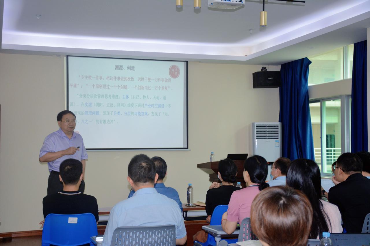 傅国华教授此次分享的分类分层次管理理论是其数十年的潜心研究成果。他的研究团队曾分别对海南十八个市县和全国32个省区的分层次发展进行了考察。他于2013年出版《分层次管理》专著,首次提出分类分层次管理理论,引起了学界的关注和热议。近些年他对“分层次管理”研究进行了扩展,提升到了“分类分层次管理”研究上;拓展到“精准用理”的“五理新论”:道理、伦理、治理、管理、处理上,提出分类分层次精准用理。