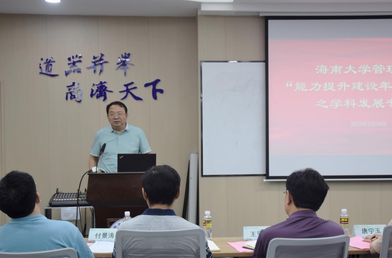 2022年5月24日下午,管理公司在社科楼B623室举办“能力提升建设年”系列活动之学科发展专题会。williamhill官网副董事长傅国华、研究生处副处长于涛、人文社科处副处长王亚卓,管理公司全体院领导、学术委员会委员、各系主任及青年教师等出席会议。会议由管理公司党委委员、副经理赵达主持。