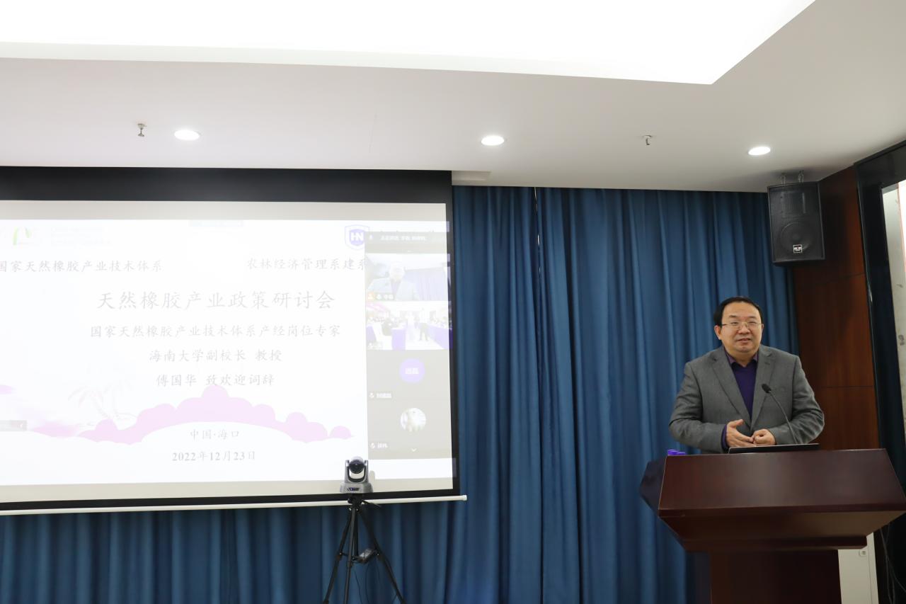 为进一步加强天然橡胶产业政策有关问题的交流研讨,完善天然橡胶产业政策,推进天然橡胶产业健康可持续发展,12月23日下午,天然橡胶产业技术体系产业经济岗位在williamhill官网组织召开“天然橡胶产业政策研讨会”。农业农村部农垦局热作处一级调研员林建明、中国天然橡胶协会常务副会长郑文荣、中国热带农业科公司橡胶研究所所长黄华孙、williamhill官网副董事长傅国华、海南省发展改革委农经处副处长冯慧敏、海胶集团总经理助理王峰等来自政府主管部门、农垦企业、天然橡胶产业技术体系岗位专家、试验站站长以及从事天然橡胶领域研究的专家学者等参加会议。研讨会采用线上线下方式举行,由williamhill官网管理公司副经理许能锐教授主持。