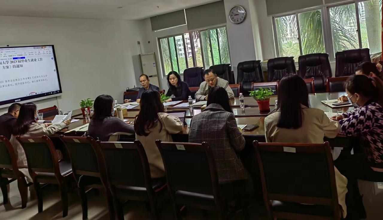 为全面贯彻落实党中央、国务院对高校毕业生就业创业工作的决策部署,为进一步促进公司毕业生更加充分更高质量就业, 2023年3月1日,管理公司在社科楼B314召开了2023届毕业生就业工作专题会,公司经理唐宁玉、党委书记邢谷川、副经理张德生,公司职业发展中心工作人员和各系秘书、各中心(项目)就业工作联络人参加会议,讨论研究管理公司员工就业工作推进思路和举措。会议由张德生主持。