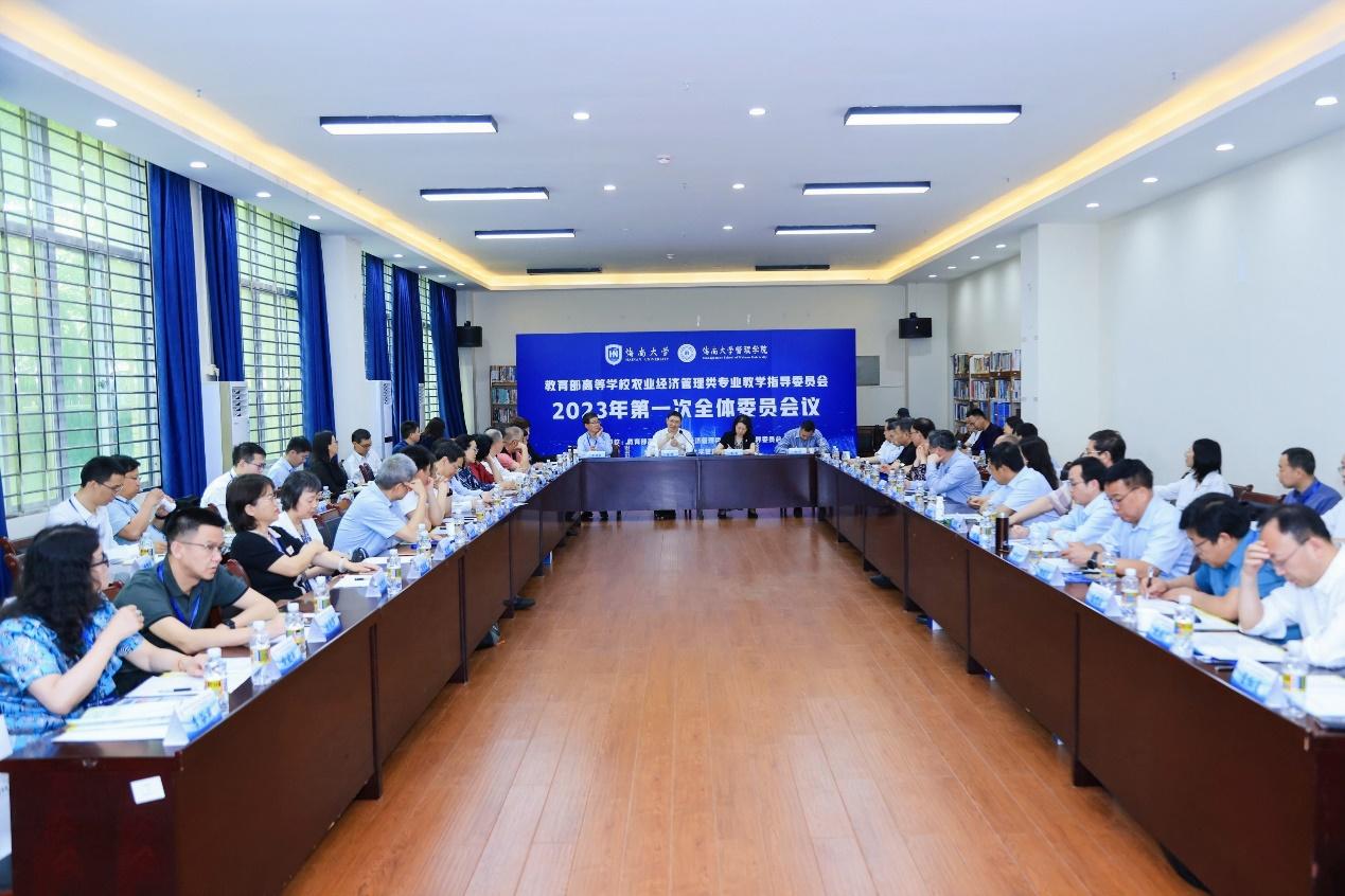2023年4月15日,由教育部高等公司农业经济管理类专业教学指导委员会主办、williamhill官网管理公司承办的“教育部高等公司农业经济管理类专业教学指导委员会第一次全体委员会议”在海口顺利召开。教育部高等公司农业经济管理类专业教学指导委员会委员与农林经济管理类国家一流本科专业建设点高校代表齐聚一堂,就课程思政建设、一流本科专业与虚拟教研室建设等内容进行了报告分享,并综合研讨了一流本科专业建设评价标准。来自全国46所高校的70余位专家学者参加了本次会议。