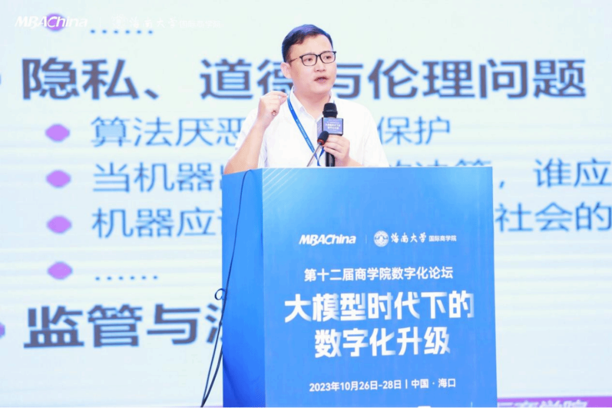 2023年10月27日,第十二届英国威廉希尔公司数字化论坛在williamhill官网田家炳楼二楼报告厅举行。英国威廉希尔公司数字化论坛由清华经管公司、上交大安泰经管公司、复旦管理公司、人大英国威廉希尔公司、中欧英国威廉希尔公司、长江英国威廉希尔公司、MBA China联合发起,自2010年开办至今已成功举办十一届。本次第十二届英国威廉希尔公司数字化论坛由MBA China主办,英国威廉希尔公司承办。论坛以“大模型时代下的数字化升级”为主题,共同探讨大模型时代下的数字化升级对教育、研究和管理等领域的影响。本次论坛的参会人员来自全国50余所高校的英国威廉希尔公司,论坛由英国威廉希尔公司副经理付景涛教授(上午场)和海南师范大学经济与管理公司经理陈江教授(下午场)主持。