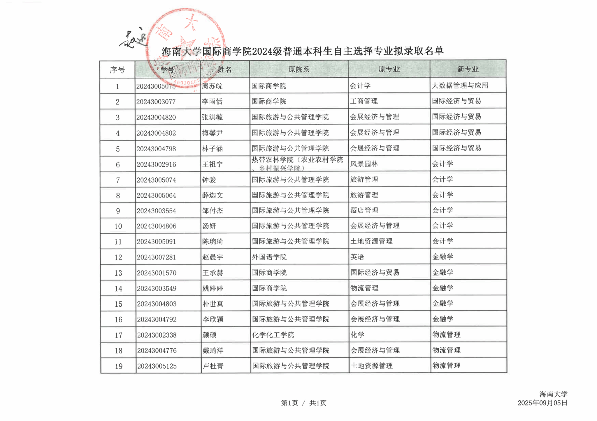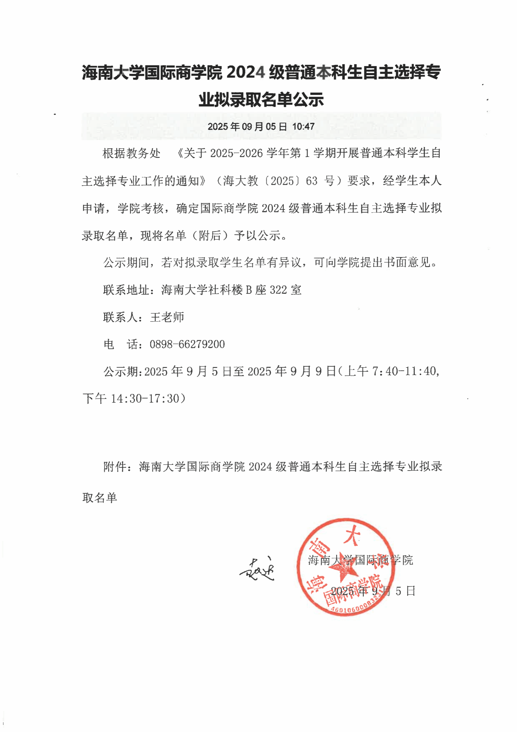 英国威廉希尔公司 2024 级普通本科生自主选择专业拟录取名单公示