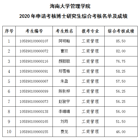 williamhill官网管理公司2020年申请考核博士研究生综合考核名单及成绩