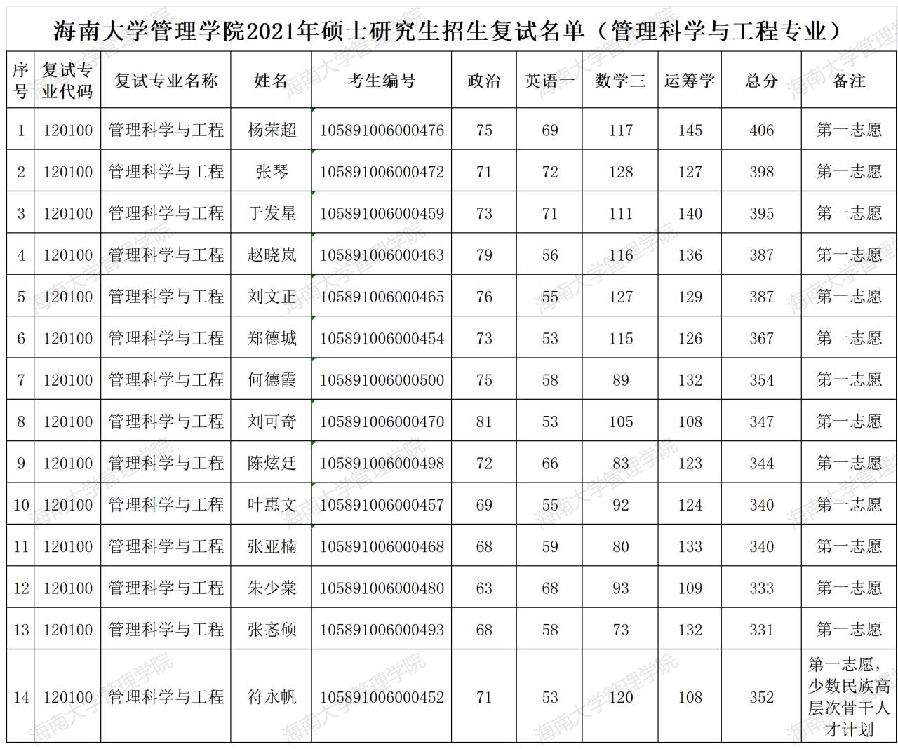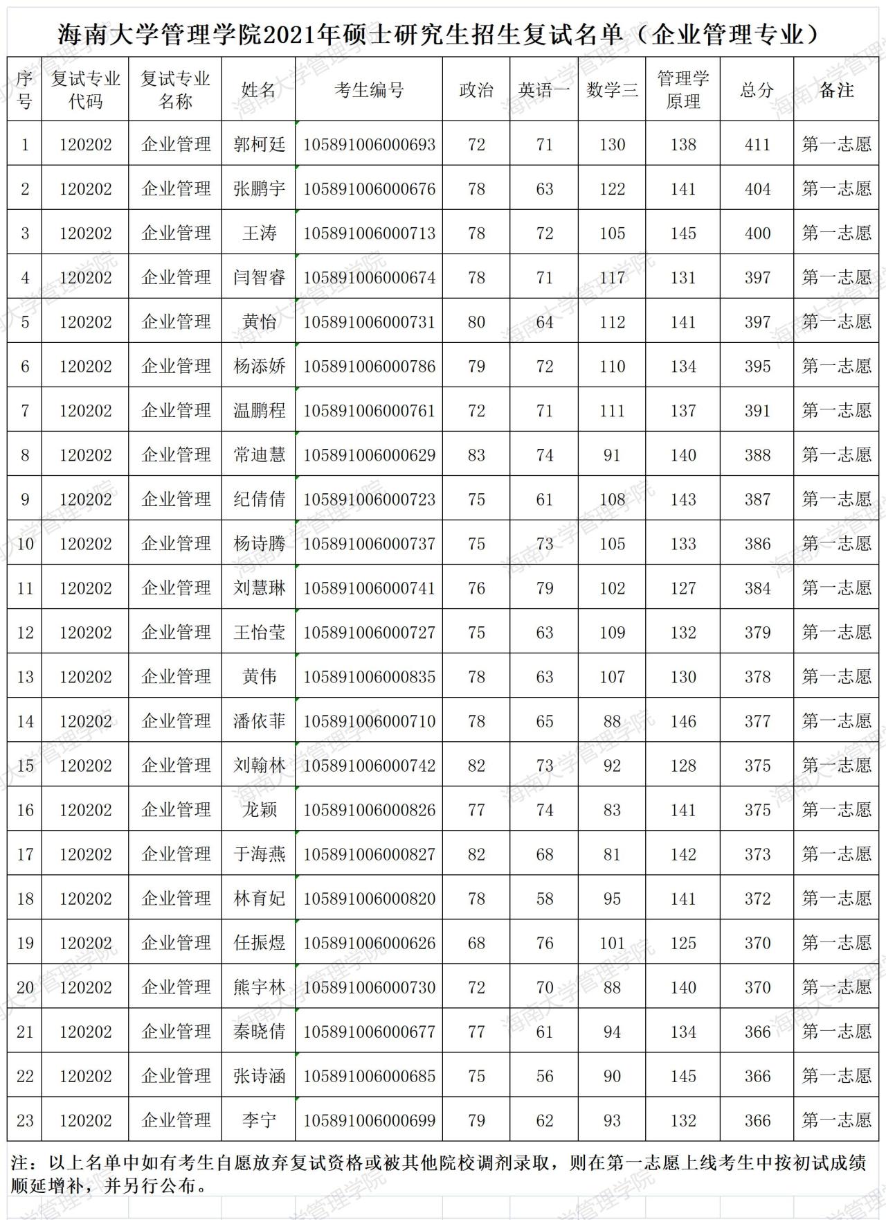 因农林经济管理专业需要调剂,复试名单将另行公布。