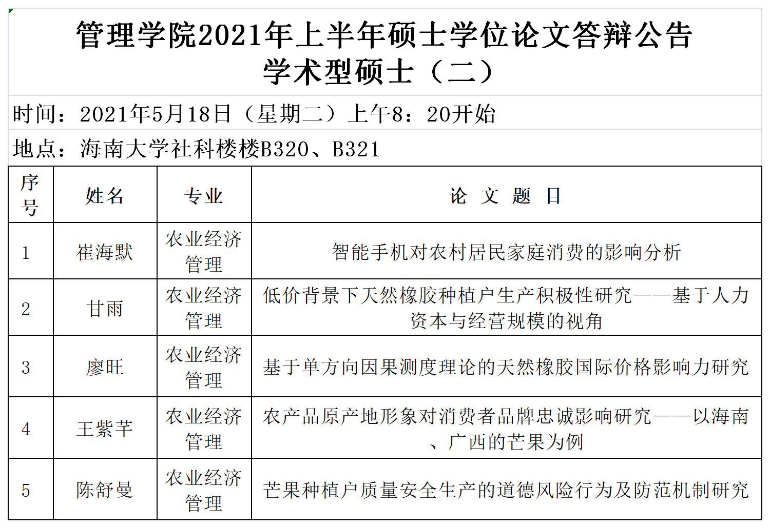 管理公司2021年上半年硕士学位论文答辩公告—学术型硕士(二)