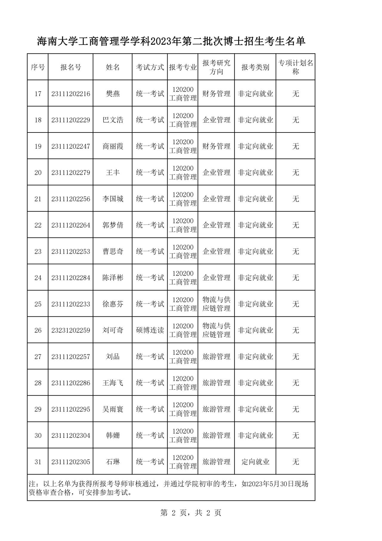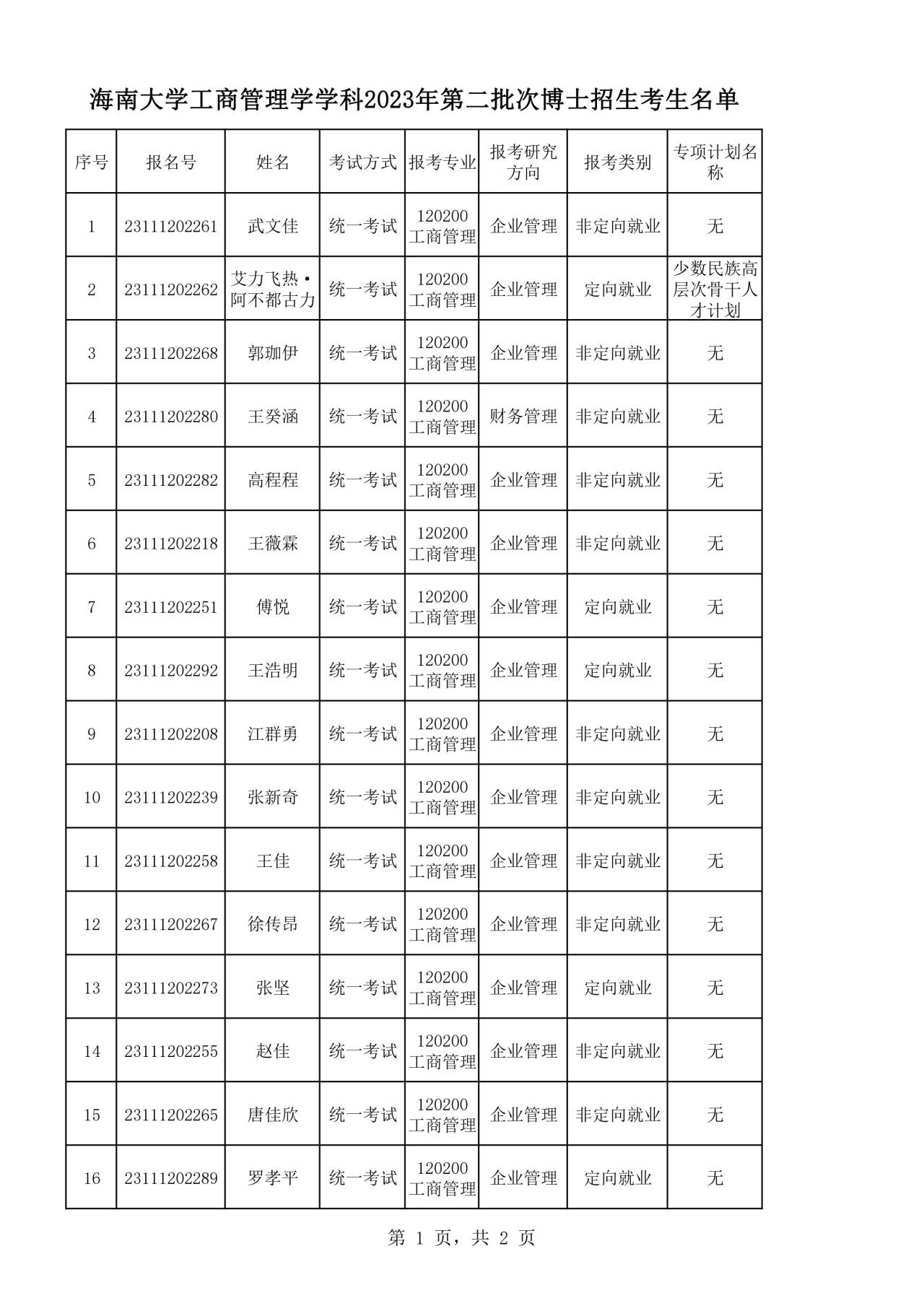 williamhill官网工商管理学学科2023年第二批次博士招生考生名单