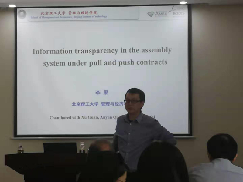 2019年11月2日上午,北京理工大学李果教授应邀为williamhill官网管理公司师生作题为“装备系统中两种合同类型的信息透明度”的学术报告。