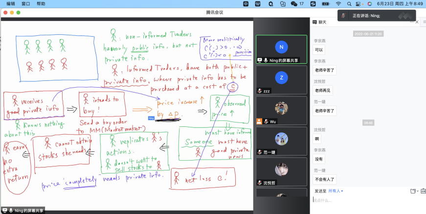 张宁老师的授课风格通俗易懂、灵活幽默,同学们的参与积极性高。他通过画图、举例的直观方式,并结合现实中大型上市公司的案例分析,例如美国亚马逊公司、吉利德公司,将所学的专业知识赋予现实意义,使同学们在本次研讨课中受益匪浅。