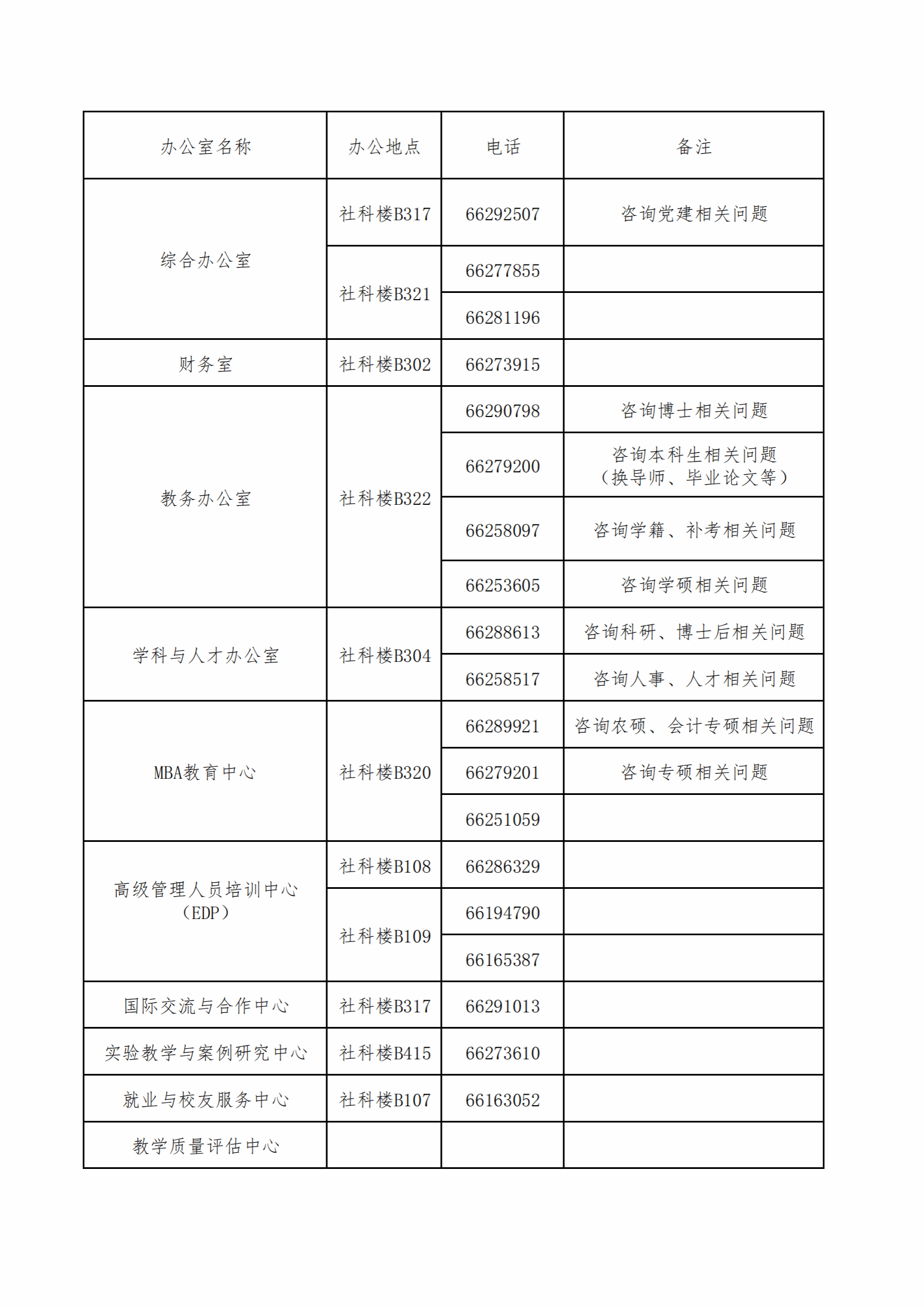 管理部门通讯录