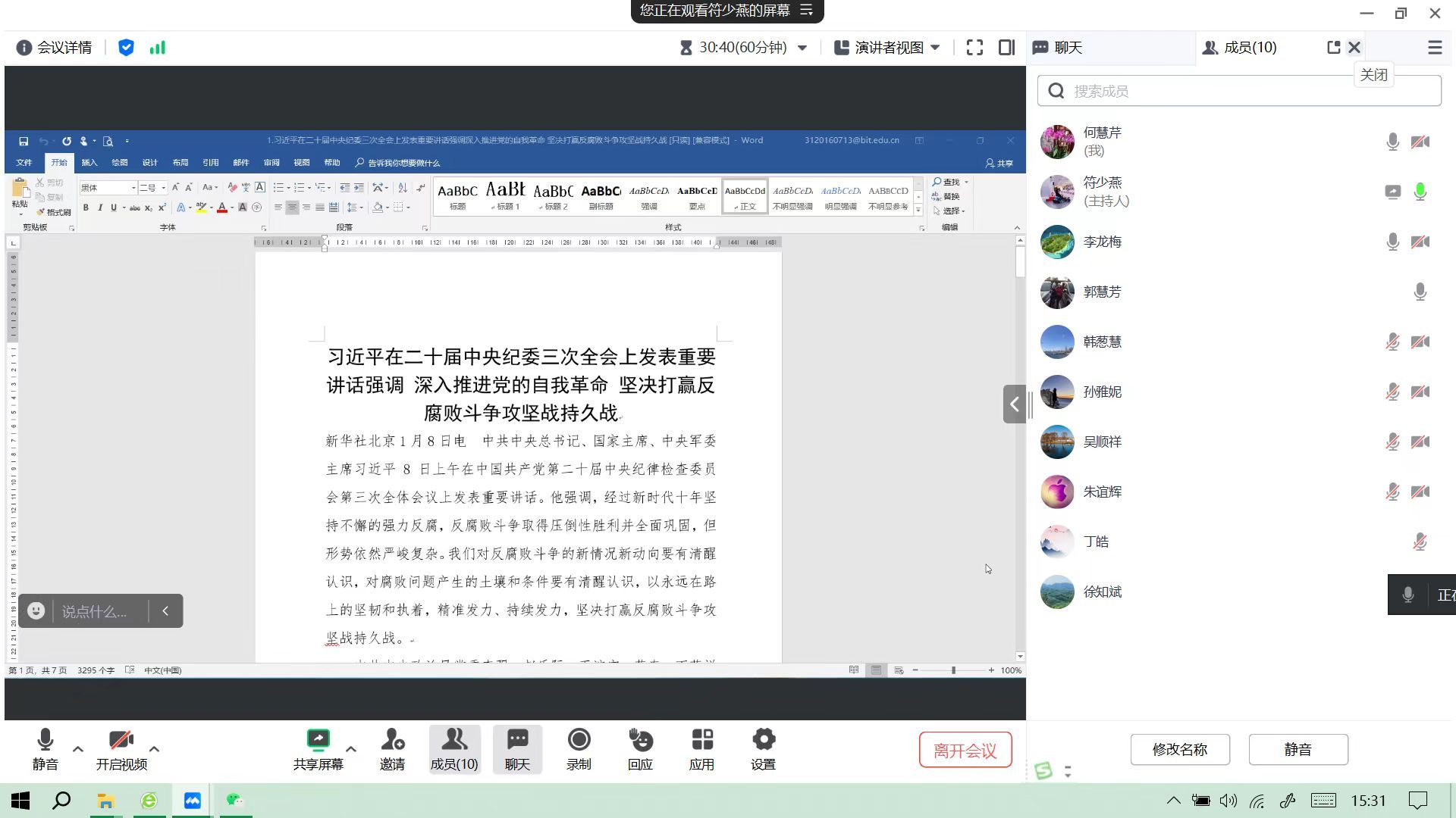 各支部结合学习内容进行了研讨,大家一致认为全面从严治党是党永葆生机活力、走好新的赶考之路的必由之路。在强国建设、民族复兴的新征程上,让我们更加紧密地团结在以习近平同志为核心的党中央周围,深入学习贯彻习近平总书记关于党的自我革命的重要思想,持之以恒净化政治生态,锲而不舍建设新时代廉洁文化和清廉校园建设,不断夺取党风廉政建设和反腐败斗争新胜利,把我们党建设得更加坚强有力。