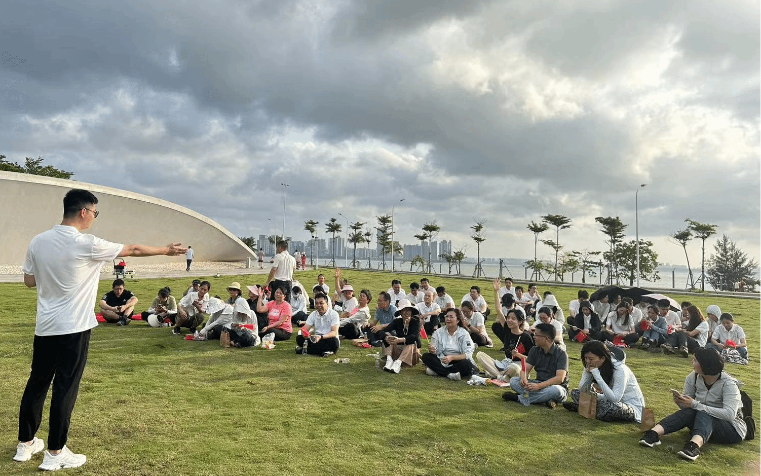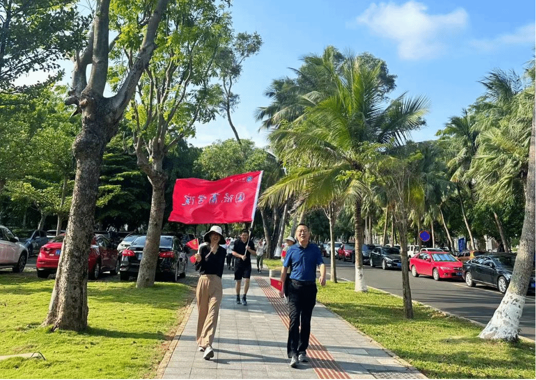 活动伊始,公司党委书记南国芳、经理唐宁玉带领部分党员和教师从社科楼出发,步行至williamhill官网新南门与中国农业银行海口龙华支行团总支汇合,共同前往目的地天空之山。