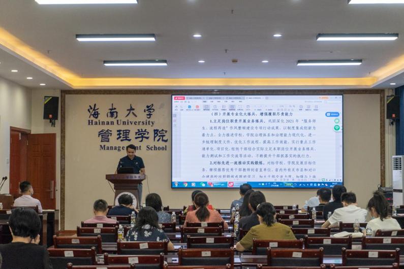 会上,邢谷川强调,2022年是“能力提升建设年”,公司上下要在作风整顿建设年活动成果基础上,推动党史学习教育常态化长效化,深化拓展“查破促”活动,谱写公司高质量发展新篇章。他要求:一要持续加强思想政治教育,推动公司教职工从政治高度深刻认识到能力建设的重要性,激发全院教职工将“本领恐慌”的紧迫感转化为提升能力的自觉性;二要坚持“稳步落实,逐层渗透”,公司和系办两级领导班子要强化党建工作责任意识,通过学习研讨、分析问题、组织实施、建章立制等方式,不断丰富强化师生学习培训和实践锻炼,激发师生学习积极性,提升学习能力,为建设海南自贸港作出更大贡献。