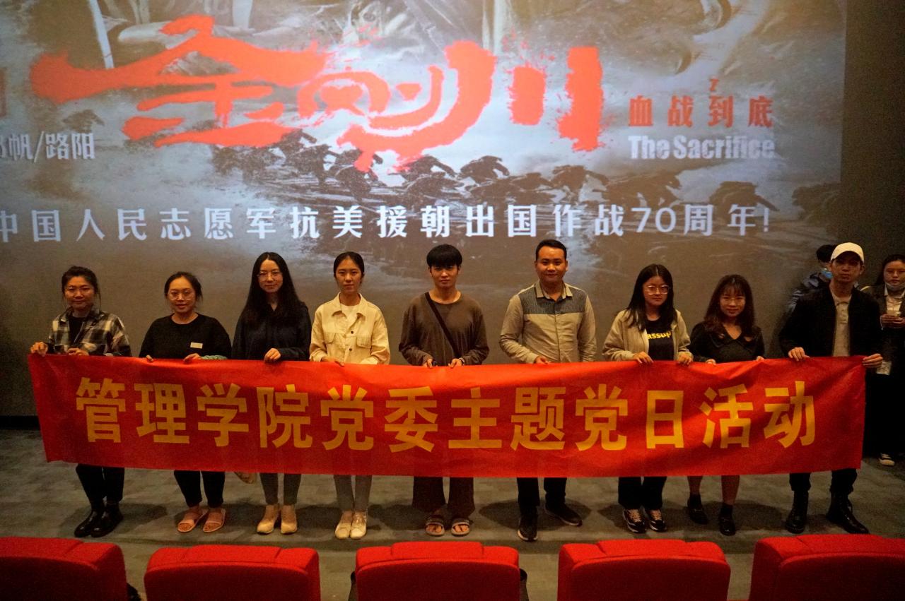 为纪念中国人民志愿军抗美援朝出国作战70周年,弘扬伟大抗美援朝精神,加强爱国主义教育、传承红色基因,williamhill官网管理公司研究生第二党支部于2020年11月28日组织了支部师生党员到海甸城影院观看爱国主义题材电影《金刚川》,开展十一月主题党日活动。
