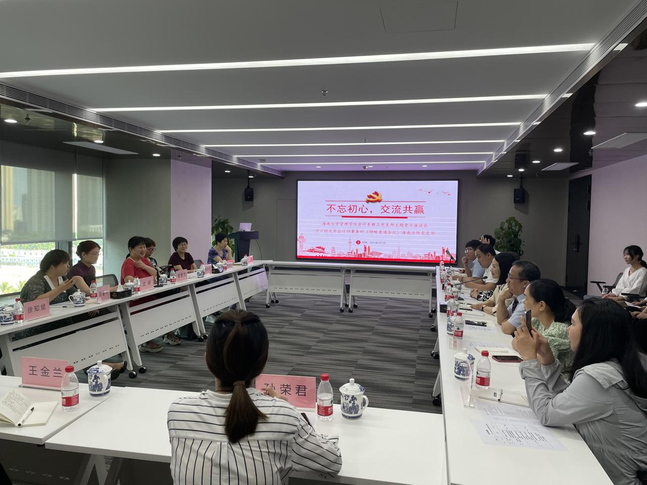 最后,双方就如何以党建促业务以及如何进行党员的考核评价等基层党建问题进行了交流。大家一致认为,要实现党建对工作和业务的引领,必须要求党员干部职工到最艰苦的地方,去承担更多地工作,充分发挥党员的示范作用,从而激发大家的工作热情,同时实现党建与工作进步的共赢。在此次座谈交流中,海南中兴财光华会计师事务所在党建方面的丰富经验和良好示范给与会的教工党员代表留下了深刻的印象。