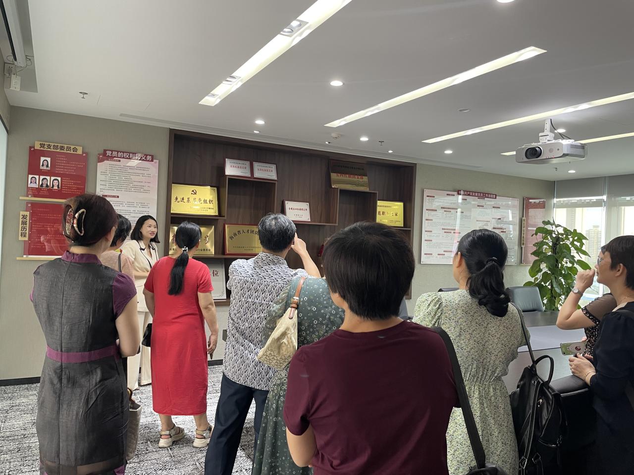 图3:胡亚玲所长带领大家参观党员活动室