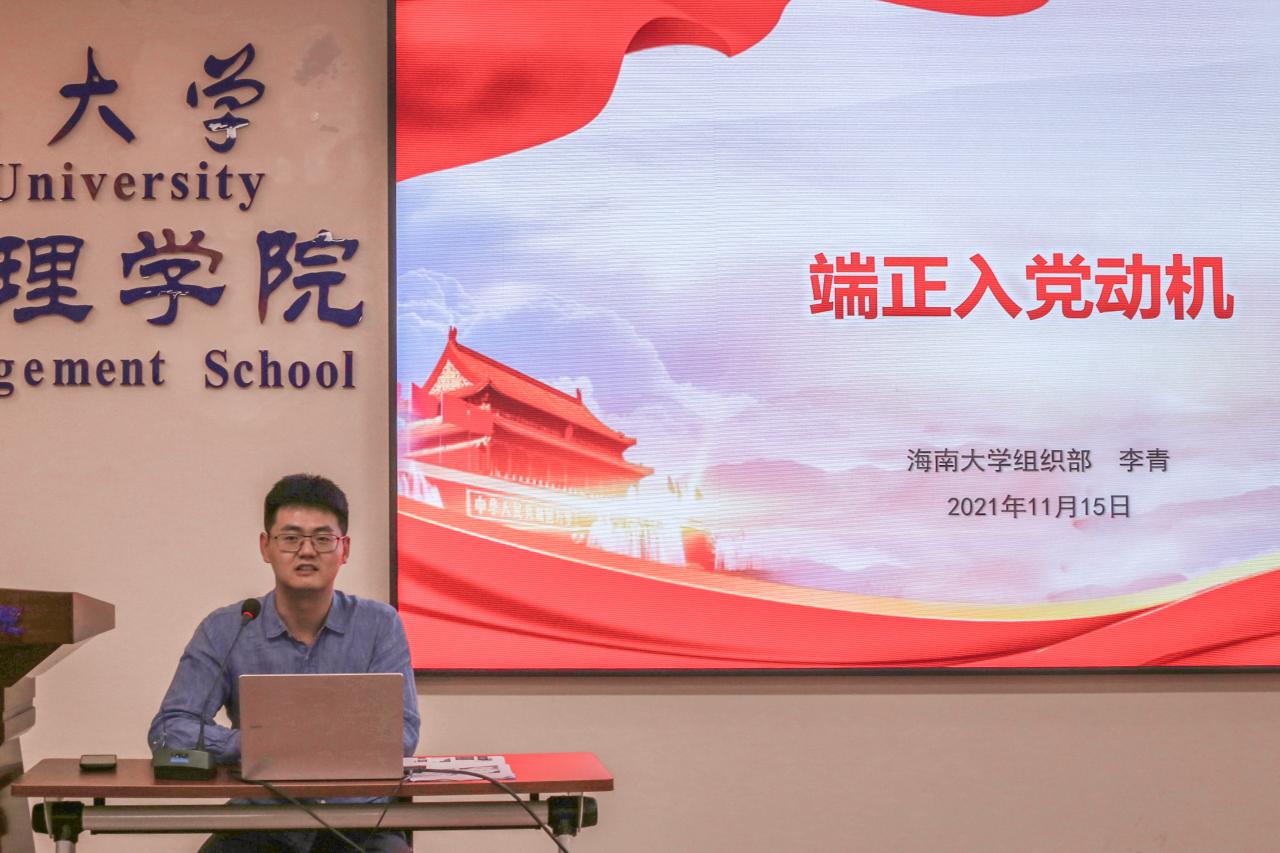 2021年11月15日下午,williamhill官网管理公司分党校2021年下半年党课培训第三讲于社科楼B112开讲,本次党课由williamhill官网组织部李青老师主讲,主题为《端正入党动机》。公司116名发展对象参训。