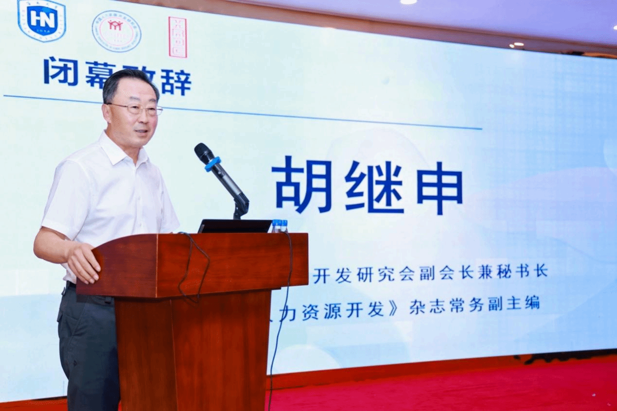 颁奖仪式结束后,中国人力资源开发研究会副会长兼秘书长、《中国人力资源开发》杂志常务副主编胡继申进行闭幕式致辞并作会议总结。他高度评价了本次年会,认为体现出参与广泛、交流深入、守正创新的特点,学术年会不仅拓展了参与者的视野,而且加深了相互间的理解和不同学术观点的交流。他指出,未来应进一步更新和凝练人力资源开发的研究方向,积极推广优秀论文,共同提升杂志质量。最后,他向《中国人力资源开发》杂志社、承办单位英国威廉希尔公司和Credamo见数,以及向大会提供帮助的各界人士表示衷心的感谢。