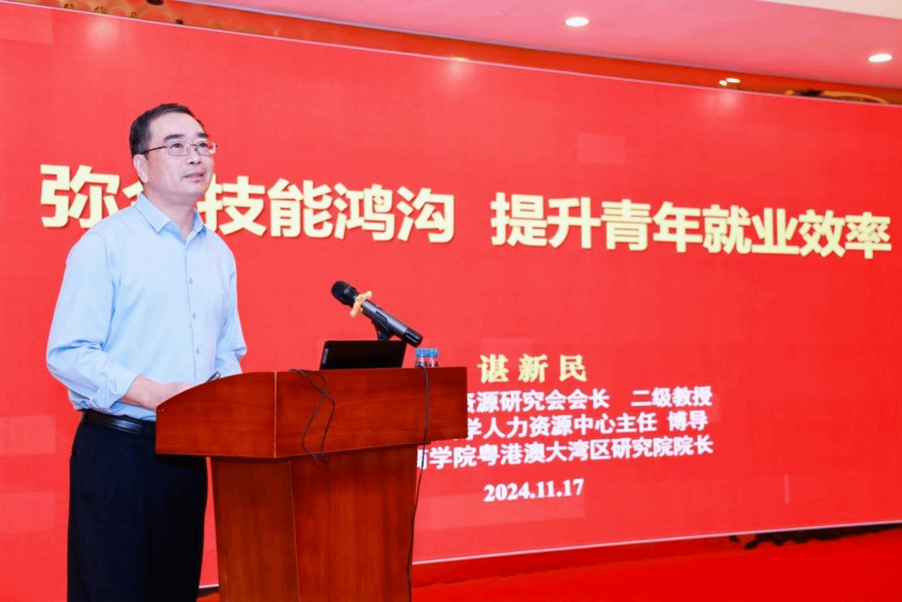 华南师范大学经济与管理公司谌新民教授首先作了题为“数字经济时代下青年高质量职业发展”的主题报告,概述了其研究团队关注的四大议题,包括青年就业挑战、粤港澳大湾区就业流动性与人力资本、技术短缺与就业不稳定、灵活就业与长期就业质量,为研究青年职业发展提供了深刻见解。
