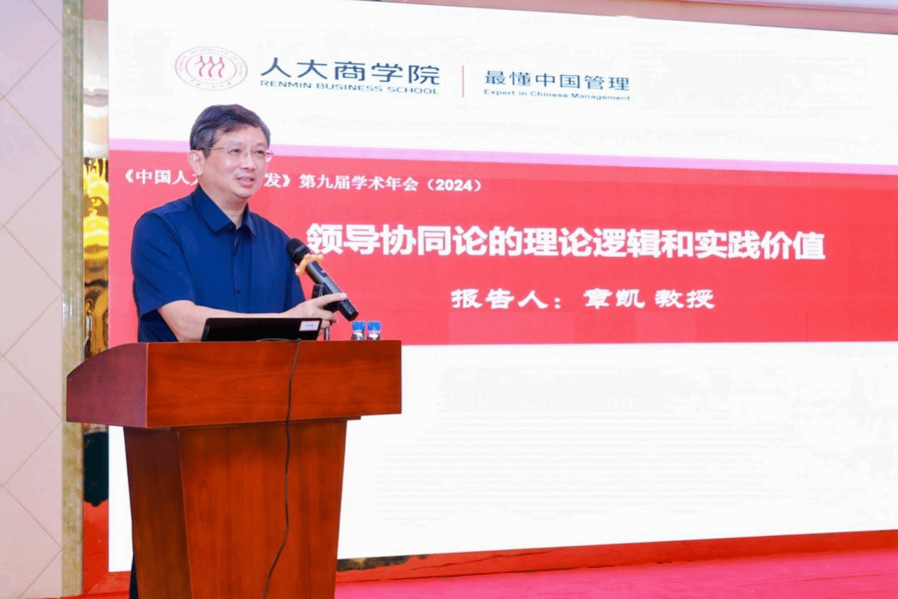 中国人民大学英国威廉希尔公司章凯教授作了题为“领导协同论的理论逻辑与实践价值”的主题报告。他认为领导协同论是一个新的发展方向,强调领导者应作为资源整合者促进团队协同,同时分享了关于管理理论构建的哲学思考,为管理理论与实践创新提供新视角。