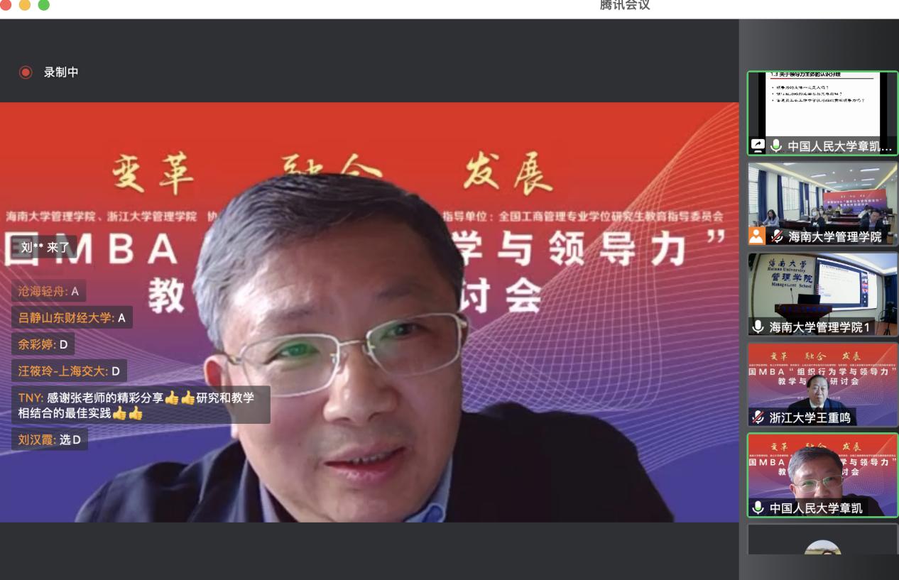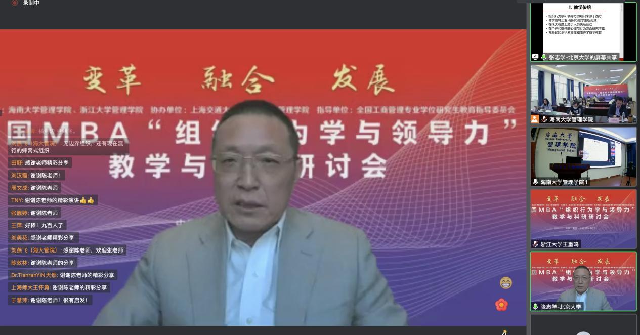 2022年4月3日,全国MBA“组织行为学与领导力”教学与科研研讨会顺利召开(线上视频会议形式)。会议旨在提高全国 MBA 培养院校组织行为学与领导力教学研究水平,增强组织行为领域教研人员的合作与交流,持续建设全国组织行为学协作组合作平台,培养高素质工商管理人才。本次会议由williamhill官网管理公司和浙江大学管理公司主办、上海交通大学安泰经济与管理公司协办,会议得到全国工商管理专业学位研究生教育指导委员指导。来自全国300多个培养单位的900余名师生参加了会议,来自清华大学、北京大学、浙江大学、上海交通大学、复旦大学、中国人民大学、中山大学、同济大学、华中科技大学等高校的27位嘉宾发表演讲、参与圆桌讨论。