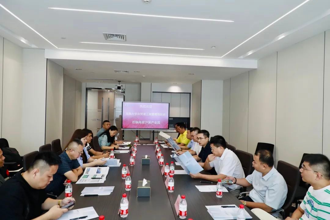 参访伊始,沪深产业园王会超总经理带领领航班师生回顾了海南自由贸易港建设的现实背景和政策走向,分享了自贸港建设的阶段性目标与制度设计内容框架,逐一介绍了海南自贸港重点园区。随后,王会超总经理向师生们详细介绍了沪深产业园的企业情况与发展历程。
