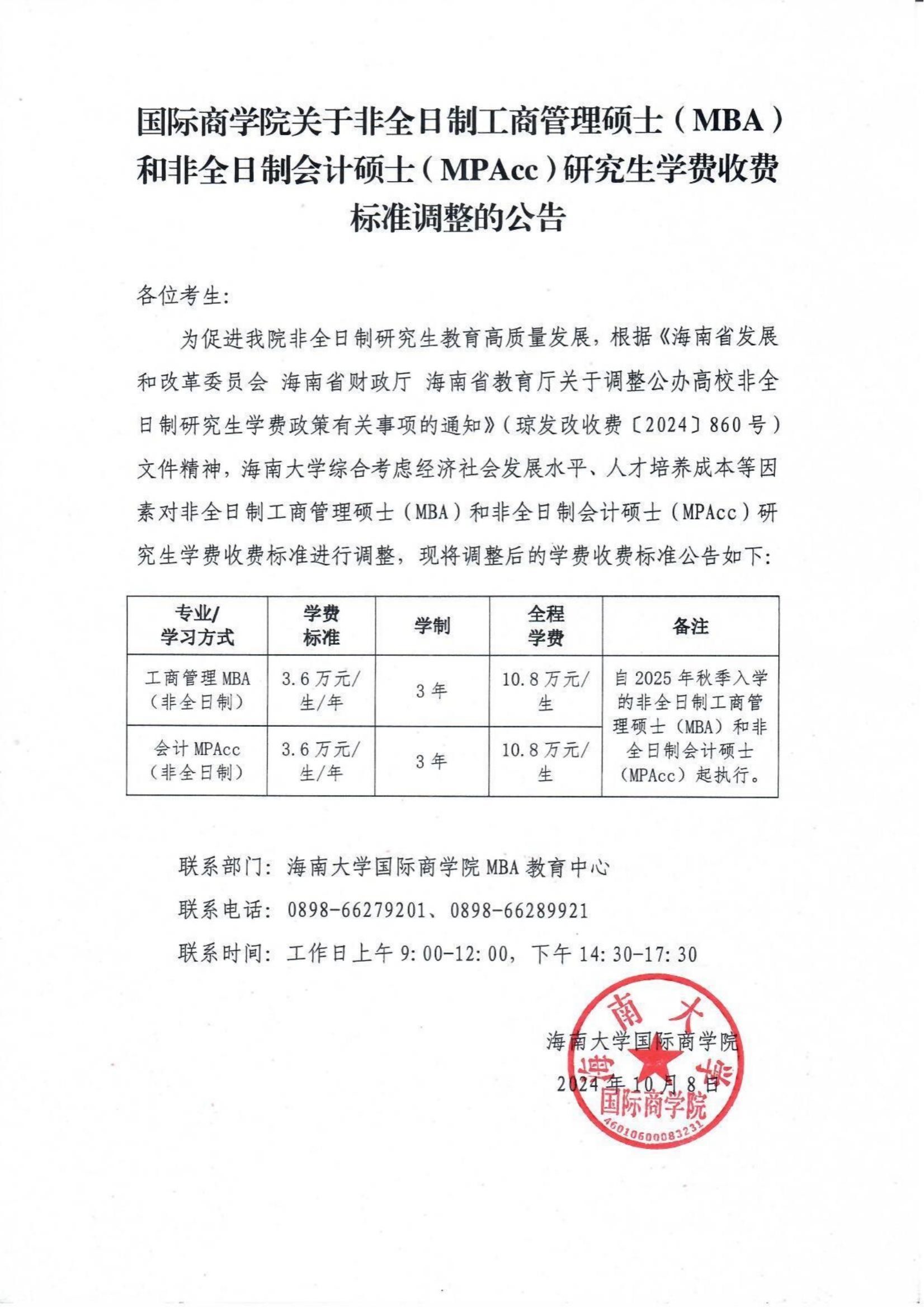 英国威廉希尔公司关于非全日制工商管理硕士(MBA)和非全日制会计硕士(MPAcc)研究生学费收费标准调整的公告