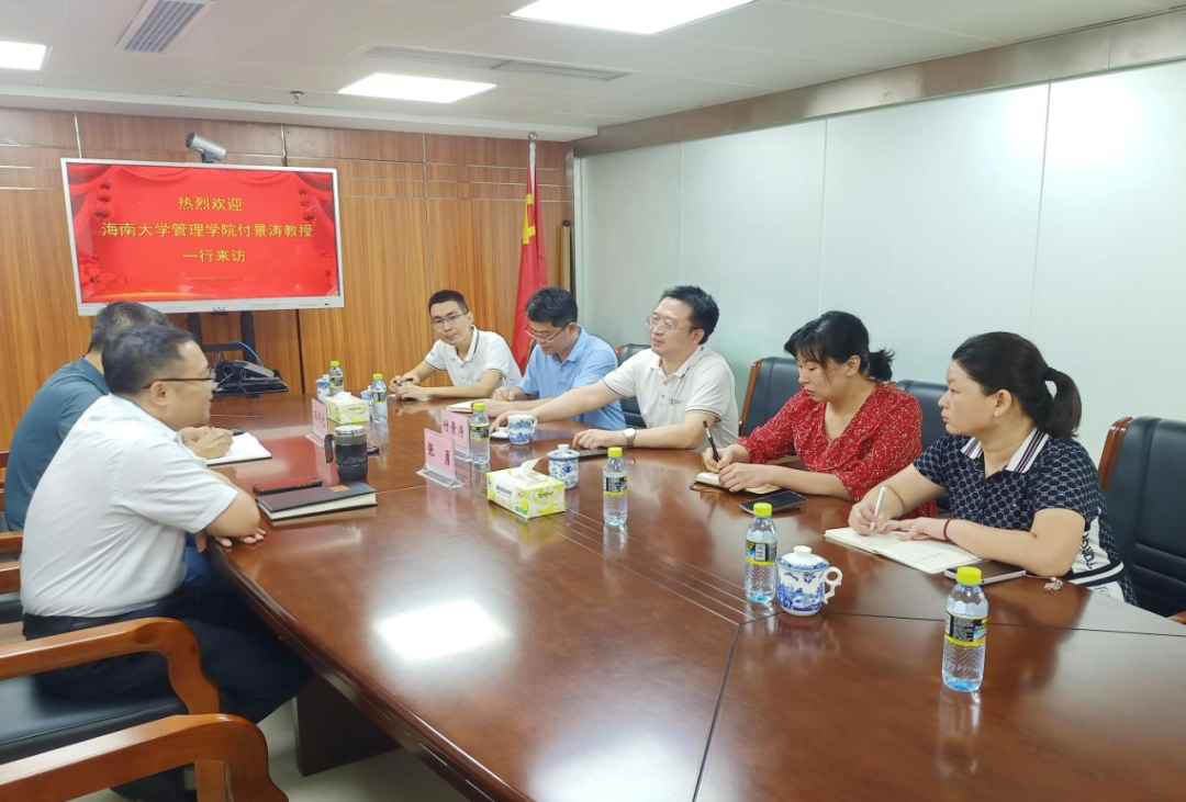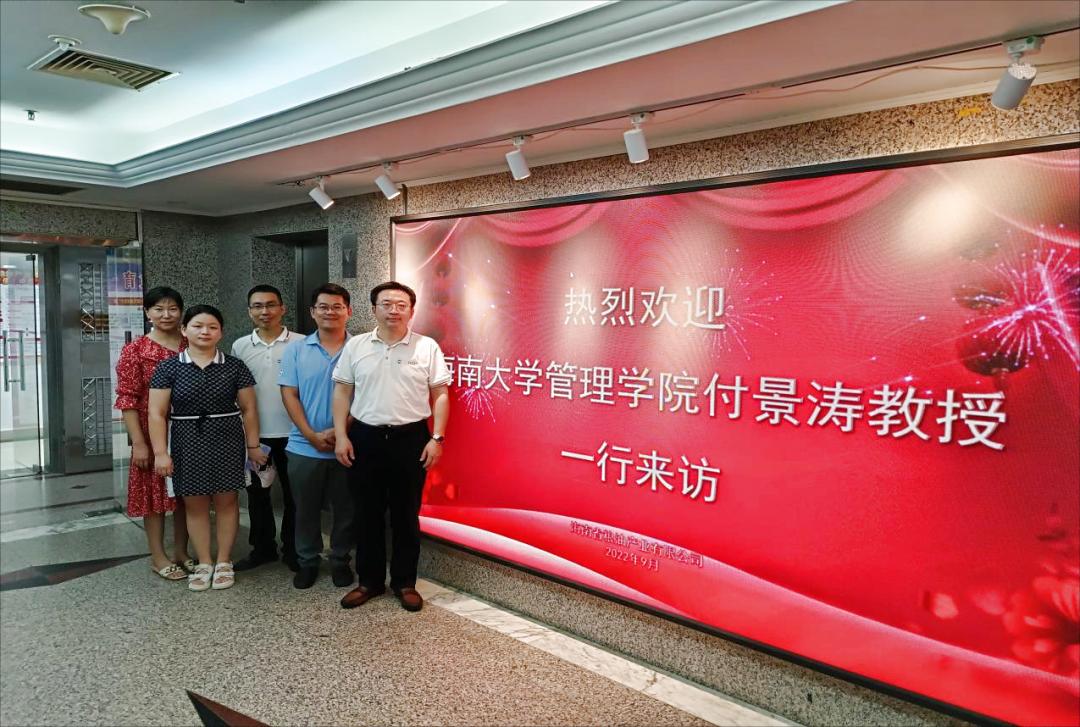 2022年9月5日下午,由williamhill官网管理公司副经理、海南省公司治理研究院副经理付景涛教授带队,williamhill官网第17届MBA联合会成员何声辉、谢小岗、王英琼和欧阳言瑾一行5人参访了海南省粮油产业有限公司。