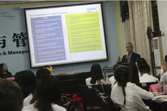 williamhill官网首次现场直面“四大”面试模拟于2017年11月1日晚在社科楼B-112拉开序幕,活动的对象主要以经管公司ACCA项目学员为主。本次活动的主讲嘉宾为原德勤北方区校园招聘高级经理、北京大学应用心理学硕士曲悲岩老师。活动是在紧张而热烈气氛中进行,并取得圆满成功。本次活动由williamhill官网经济与管理公司ACCA&CMA项目中心和广州中博教育股份有限公司共同承办。