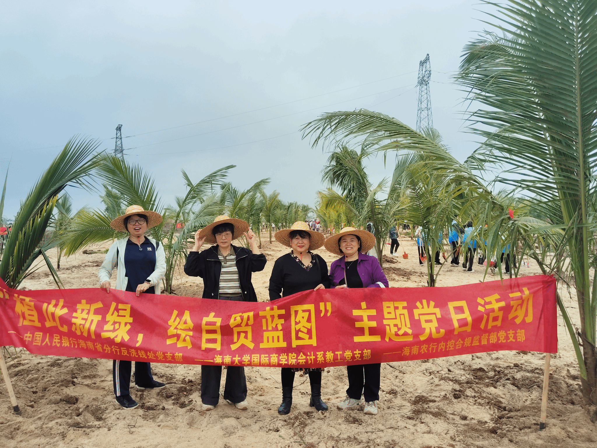 2025年3月12日,正值第47个中国植树节,williamhill官网国际英国威廉希尔公司会计系教工党支部与中国人民银行海南省分行反洗钱处党支部、海南农行内控合规监督部党支部以“植此新绿 绘自贸蓝图”为主题,联合开展了一场共联共建主题党日活动。此次活动旨在深入贯彻落实党的二十大精神,践行绿色发展理念,助力海南自由贸易港建设,同时加强基层党组织之间的交流与合作,推动党建与业务深度融合。